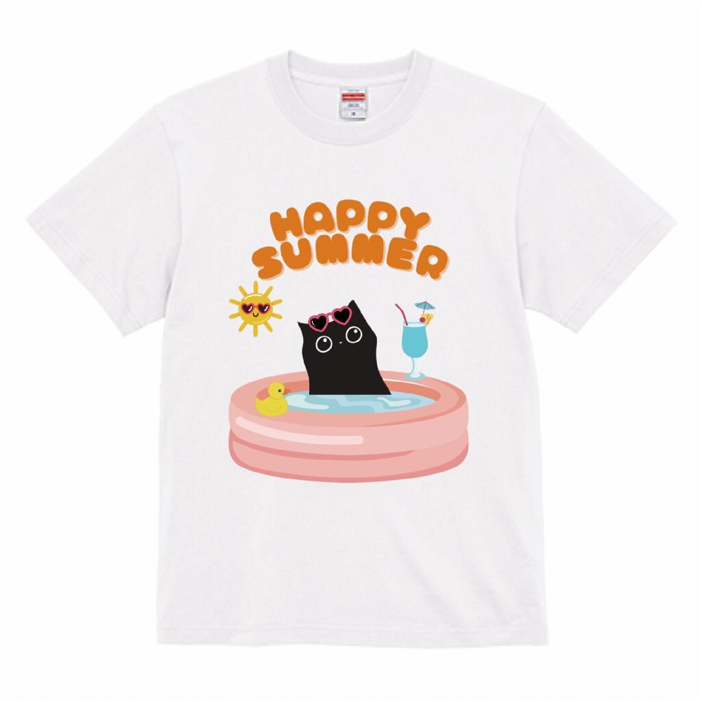 【3013】猫さんTシャツ HAPPY SUMMER サイズS~XL
