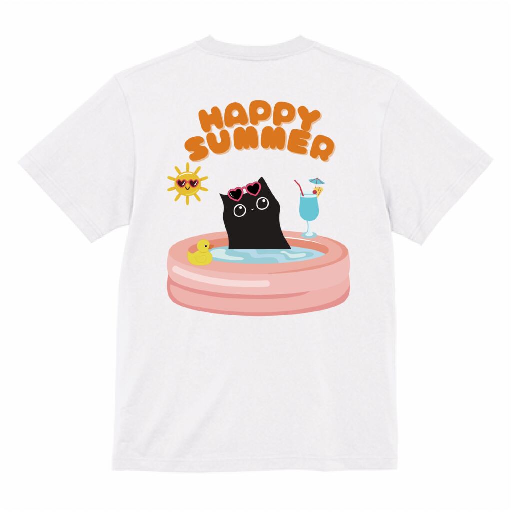 【4013】バックプリント猫さんTシャツ HAPPY SUMMER サイズS~XL